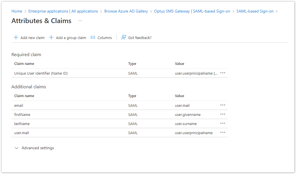 Note: The user account attributes that the messaging platform expects to be mapped from the identity provider are -